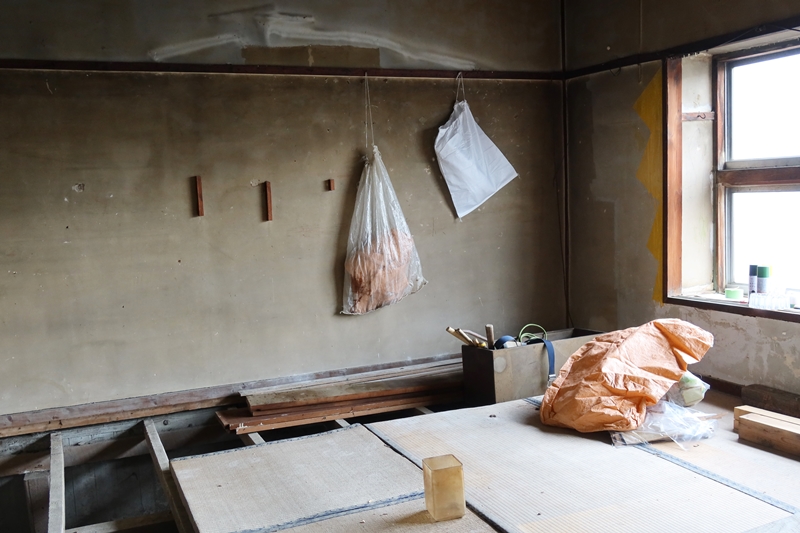 取材時には入居者第一号となったDAISY WORLDさん(以下DAISYさん)が改修作業に訪れており、これからの計画を話してくれた。DAISYさんが借りたのは1階、2階の2部屋で1階は週末だけ開くカフェにし、2階を金継ぎアトリエにする予定だ。