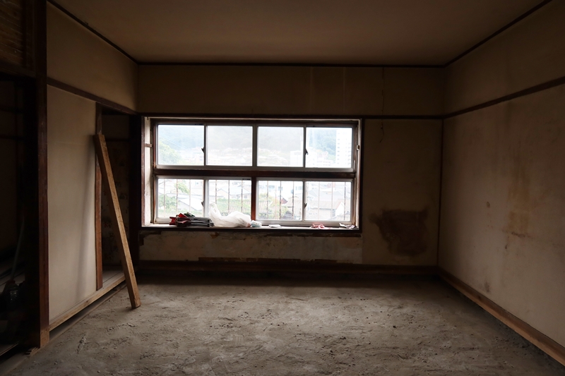 住んでいるのは小倉だが、門司はそれほど遠くはなく、この建物は自然に囲まれ、風通しが良い点や古さが気に入った。四角く可愛らしい窓、昔らしい雰囲気を活かして広い空間に数席をゆったりと配したカフェにするつもりだという。