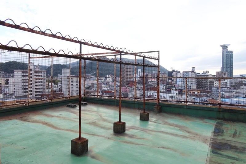 屋上からは門司港エリアに建つ黒川紀章設計の高層マンションレトロハイマート(31階に門司港レトロ展望室)が見え、夏に行われる関門海峡花火大会も望めるとか。周囲に高い建物がないので開放的で気持ちの良い空間だ。