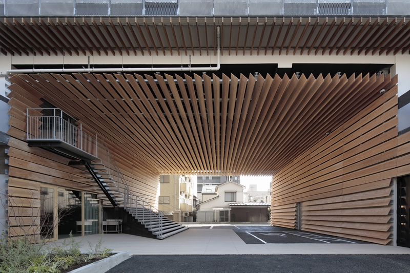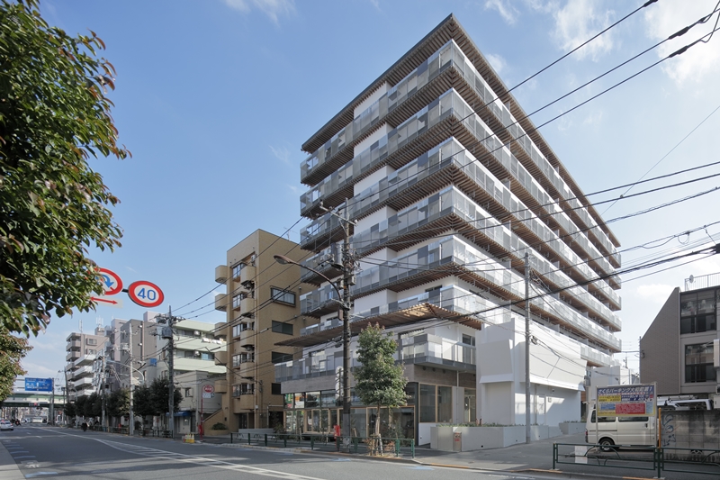 2棟の社宅跡地に誕生、木の温かみを感じる8階建て賃貸住宅「KOENJI Crossover」
