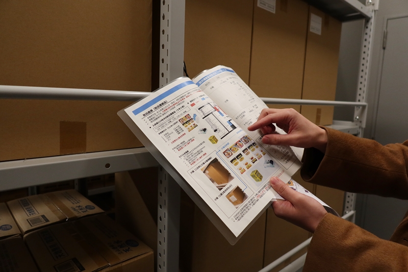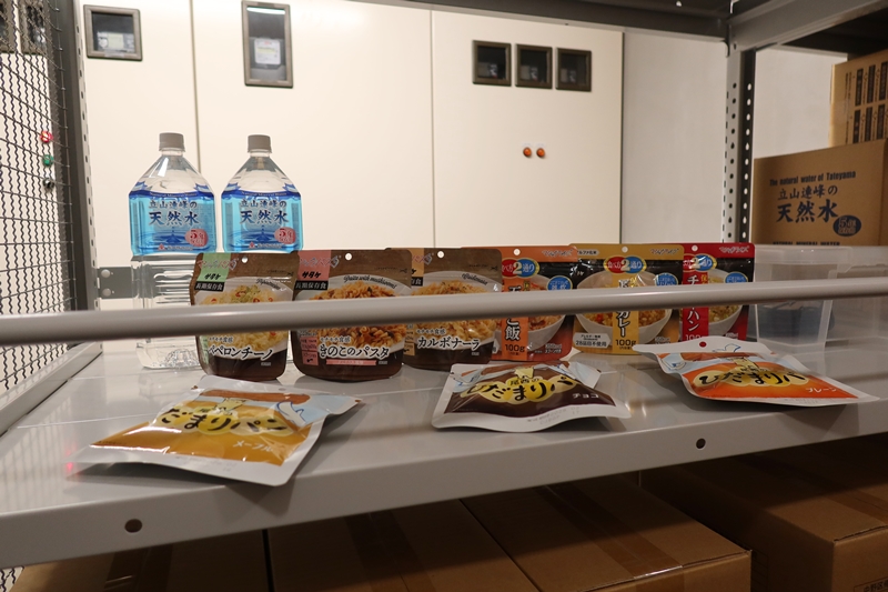 建物1階・2階の店舗スペースについては中野区と帰宅困難者の一時滞在施設として開放することを協定しているため、備蓄倉庫にはそうした人達向けの防災品も備蓄されている。