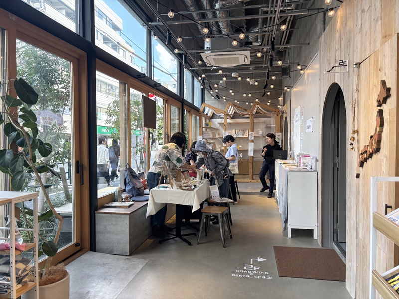 建物の早稲田通り側にある同施設は1階にレンタルキッチンとしても使えるカフェがあり、通り沿いには展示に使えるスペース、ポップアップで店を出せる空間などがあり、2階はコワーキングスペースとレンタルスペース。どちらも入居者のみではなく、誰もが利用できるスペースとなっており、裏手にあるピロティ広場を使ったイベントを開催することもできる。