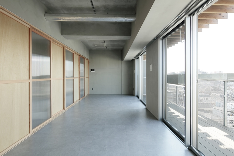 「共用廊下の上部にも木材が使われているのですが、建物内だと乾燥してしまうためか、木が暴れ(反ったり、割れたりする自然現象をこう表現する)、一部手直しをしました。自然の材料を使うにはこうしたトラブルもありますが、やはり、木が使われているとほっとするのではないでしょうか」(高木さん)