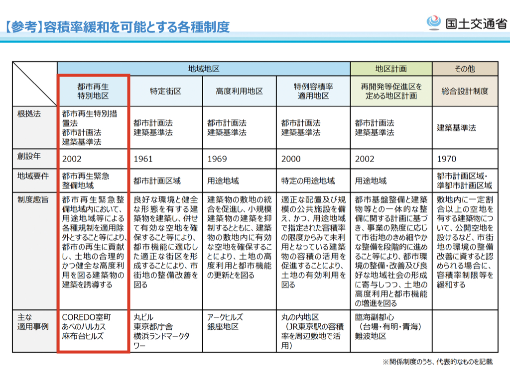 このため、都市再生特別地区の活用が前提となるが、制度的に連動して適用される傾向にある。