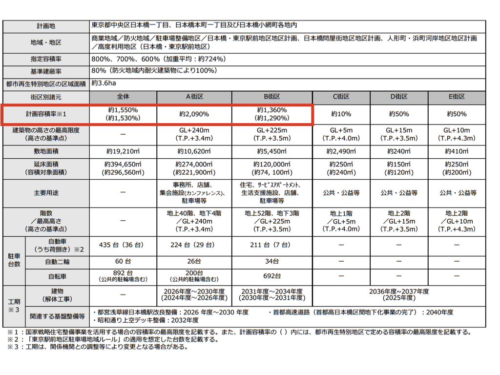 この日本橋一丁目東地区以外でも「池袋駅西口地区(2024年11月に特区認定)」では、最大容積率が約2,040%、「宮益坂地区(2023年4月に特区認定)」では約2020%、「新宿駅西南口地区(2022年11月)」では、約2,000%と次々と2,000%以上の都市再生プロジェクトが進行している。