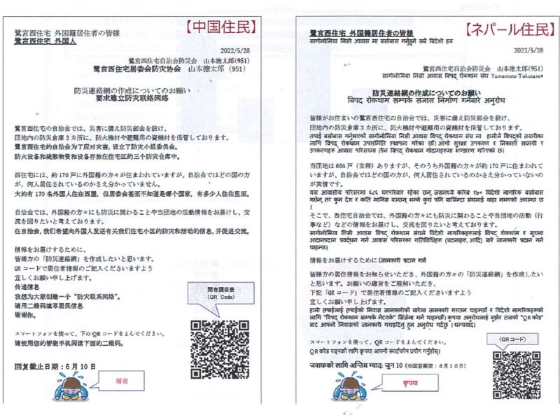 とはいえ、自治会として動かないわけにはいかない。多言語に対応した注意喚起やお知らせの紙をポスティングしていたというが、肝心の外国籍入居者に伝わっている手応えがなかった。