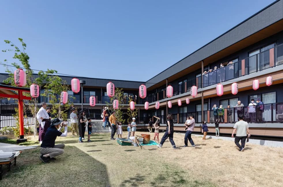 年初に開かれた餅つきイベントでは、ホームの入居者はもちろん、近隣で暮らす大人や子どもが次々訪れ、社殿の庭に笑い声があふれる一日となった。