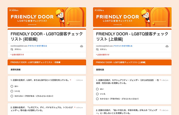 「LGBTQ接客チェックリスト」は、「初級編」と「上級編」の2種類が用意されている。