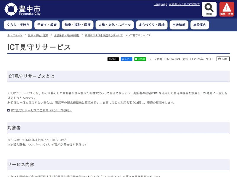それと並行して、2023年3月から豊中市が始めたICT機器を活用した見守りサービスの活用を推進している。トイレの電球をセンサー式のものに交換し、点灯・消灯の動きが24時間に一度もない場合、異常を検知して緊急連絡先にメールで知らせてくれるサービスで、単身の高齢者宅に市が無料で設置してくれる。