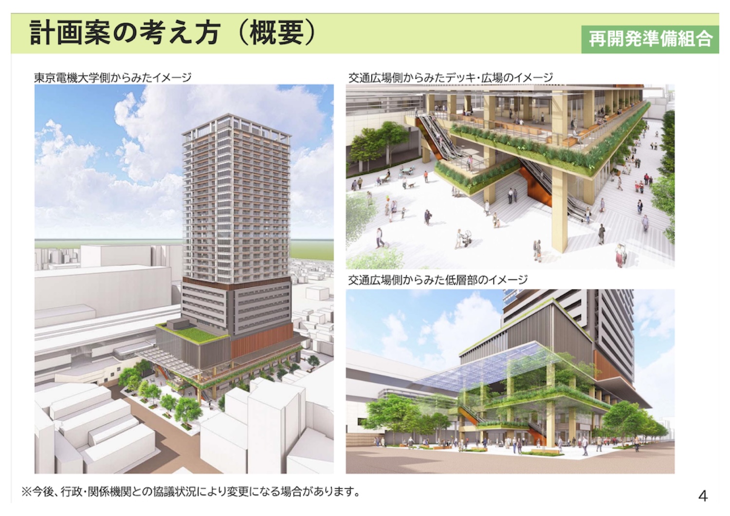 約1年前から足立区による住民向け説明会が数回開催され、2025年3月には千住旭町地区の地区まちづくり計画の変更が行われ、再開発事業の該当地域(北街区)が「賑わい拠点地区」と位置づけられた。12月には、千住旭町地区都市計画(原案)の説明会も行われている。しかし、地元の人からはいまだに賛否両論がささやかれ、該当地域の地権者の中にも、個別に十分な話し合いが持たれないまま計画が進んでいることに不安を訴える声も聞く。