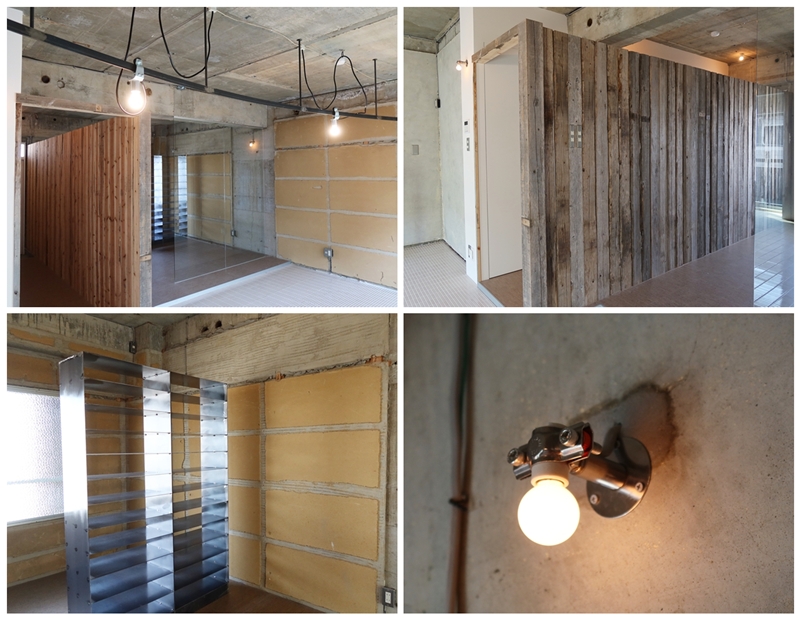 続いても建築とちょっと距離がありそうなご商売の方々が手掛けた部屋を見ていこう。まずは205(専有面積40.07m2 賃料9万2000円)。映像クリエイターのスタヂオライオンさんが手掛けており、奥まで土足で入れる部屋の窓側半分が制作のためのスペースとなっている。