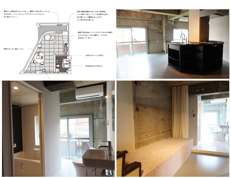 また、この部屋は窓辺に水回りが作られており、室内にある風呂に窓があり、その外に室内空間があったりもする。使い勝手より発想優先、賃貸ならではの自由な空間だ。