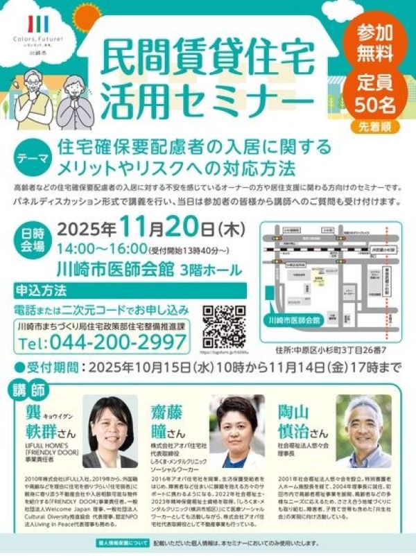 川崎市居住支援協議会では、居住支援の拡充を目指し、2025年11月20日に大家や支援者に向けた「民間賃貸住宅活用セミナー」が開催された。