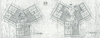 団地好きの間で人気の高い住棟形状にスターハウスがある。これは一般的には中央に三角形の階段、そこからY字型、放射状に住棟が伸びる、上空から見ると星の形に見える建物で、一般的な板状の住棟と違い、採光、通風面でメリットがあると言われる。今回、このイベントが開催された東京都赤羽台にある旧赤羽台団地もかつては複数のスターハウスが建てられており、現在はそのうちの3棟が国の登録有形文化財として保存されている。