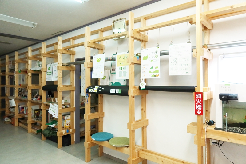 加えて施設内には以前から実施していたスマホ教室、子どもたちの学習支援などの場を移転、ちょっと一休みできるスペースなども作られている。ちょうど竹山団地のシンボルである人工池を見渡すようなロケーションで、団地内でも屈指の気持ちよい空間である。