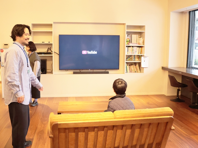 「大型テレビ、スピーカーが設置されているので家族、友人と一緒にスポーツ観戦を楽しむ人たちもいます。最近ではクリスマス、ハロウィン等、入居者さん企画のイベントが開催されるようになり、浴衣で集まる夏祭りも開かれました。子ども同士が勉強会をしていることもあります。