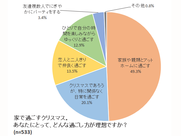 何もしない、もしくは家で過ごすと回答した人が多かったアンケート結果。それでは家で過ごすクリスマスの理想はどんな過ごし方なのだろうか。