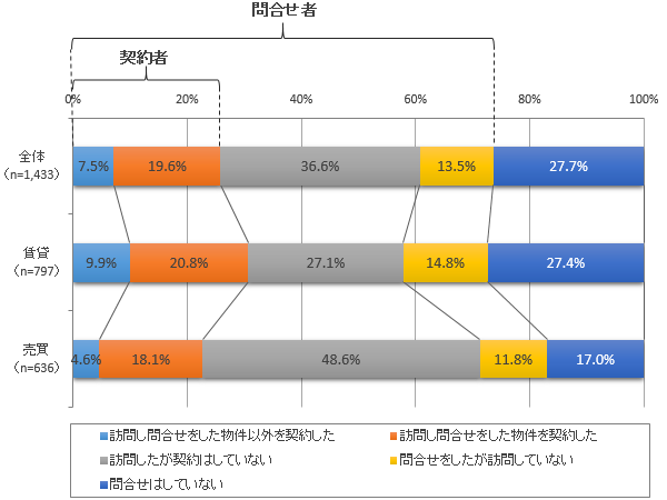では、物件を契約したユーザーに絞った場合、契約に至るまでの不動産会社へのアクションにどのような傾向があるのだろうか。