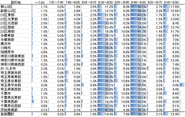 都心3区に鉄道通勤者が集中、ピークの時間帯は?