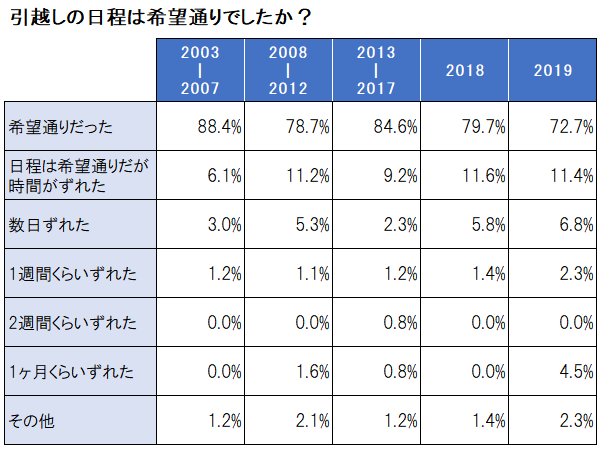 では、この引越しは希望通りのタイミングだったのだろうか? 調査した結果が表1だ。