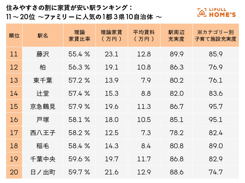 ファミリーに人気の10自治体のうち「住みやすさの割に家賃が安い駅」はどこ?