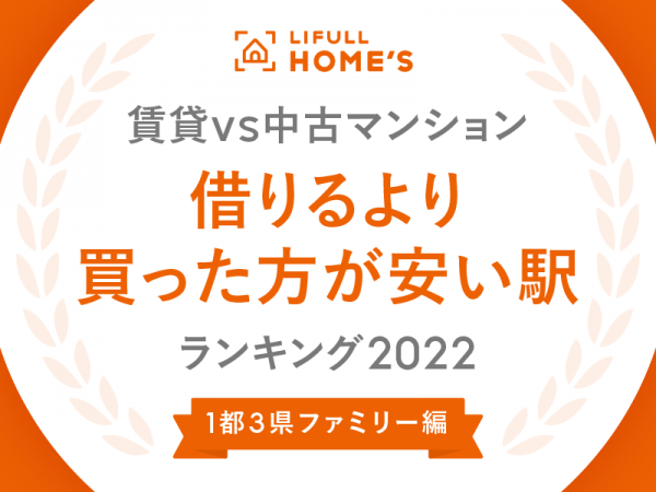 対象物件は、2021年4月~2022年3月の12ヶ月間に、不動産・住宅情報サイト「LIFULL HOME'S」に掲載された、築40年以内、駅徒歩15分以内、ファミリー向け(2DK以上)の間取りの賃貸物件(マンション・アパート)ならびに中古マンション。ランキングの対象とした駅は、1都3県(東京都、神奈川県、埼玉県、千葉県)で12ヶ月間の掲載物件数が賃貸物件200件・中古マンション50件を超える680駅のうち、賃貸物件の家賃中央値20万円・中古マンションの価格中央値6,000万円を超えた99駅を除外した581駅。