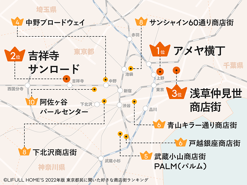 東京都内には2,400を超える商店街があり、なかには地元の人だけでなく、観光客からも人気を集める商店街もある。LIFULL HOME'S PRESSは、商店街が「とても好き」「好き」「まあまあ好き」と回答し、かつ商店街に2週間に1回以上行く人を対象に、アンケート調査を実施。調査結果から、商店街に行く頻度や、好きな商店街ランキング、家賃相場などを紹介する。