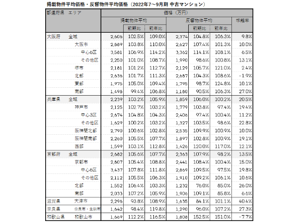 2022年7~9月期 中古マンション 近畿圏版(Excel)