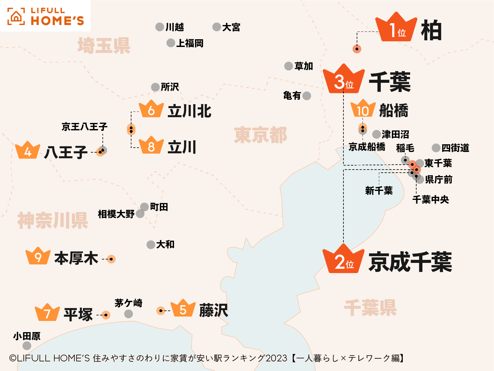 春は一人暮らしの新居を探す人が増える時季。LIFULL HOME`S PRESSでは、テレワークが中心となる新生活を想定し、「都心から多少離れても家賃を抑えたい」「駅前で生活に便利なものがそろう街がいい」「仕事の合間に自宅近くでリフレッシュできる環境がいい」といったニーズに応えるべく、「【一人暮らし×テレワーク編】住みやすさのわりに家賃が安い駅ランキング2023」を実施した。ランキング概要を見ていこう。