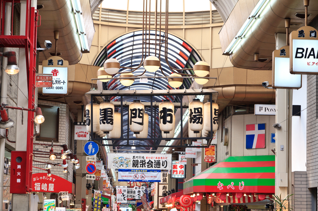 「大阪の台所」とも呼ばれる黒門市場が4位。鮮魚店やフグやスッポンの専門店をはじめ飲食店や青果、精肉などさまざまな店舗が約150、全長580メートルのアーケード下に並ぶ。黒門市場の名前は、明治末期まで市場の近くにあった寺院・圓明寺の山門が黒塗りであったことに由来している。食い倒れの街・大阪らしい食べ歩きを目的にした観光客も多く訪れる。