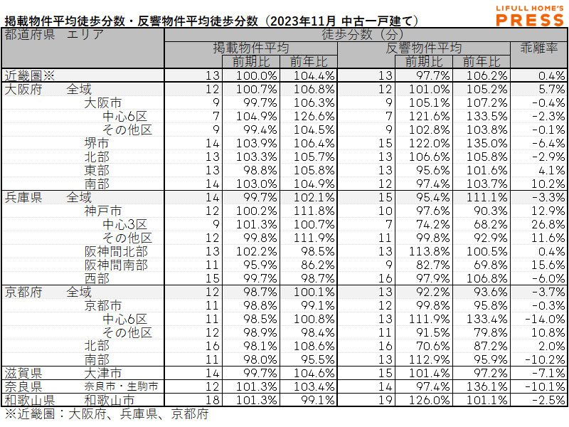 ・掲載物件平均徒歩分数