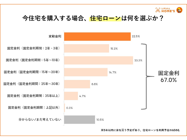 ・今住宅ローンを組むなら:「固定金利」67%、「変動金利」が23%
