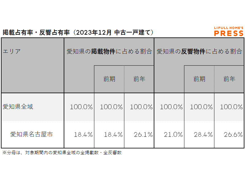 LIFULL HOME'Sマーケットレポートとは、LIFULL HOME'Sで掲載された物件データおよびユーザーがLIFULL HOME'Sを介して不動産会社に問合せた物件データをマーケットごとに公開するものである。本稿では、2023年12月に登録・公開された愛知県、札幌市、仙台市、広島市、福岡市の中古一戸建てにおける以下のデータをまとめた。