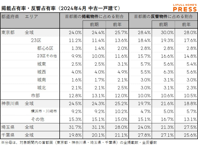 LIFULL HOME'Sマーケットレポートとは、LIFULL HOME’Sで掲載された物件データおよびユーザーがLIFULL HOME'Sを介して不動産会社に問合せた物件データをマーケットごとに公開するものである。本稿では、2024年4月に登録・公開された首都圏の中古一戸建てにおける以下のデータをまとめた。