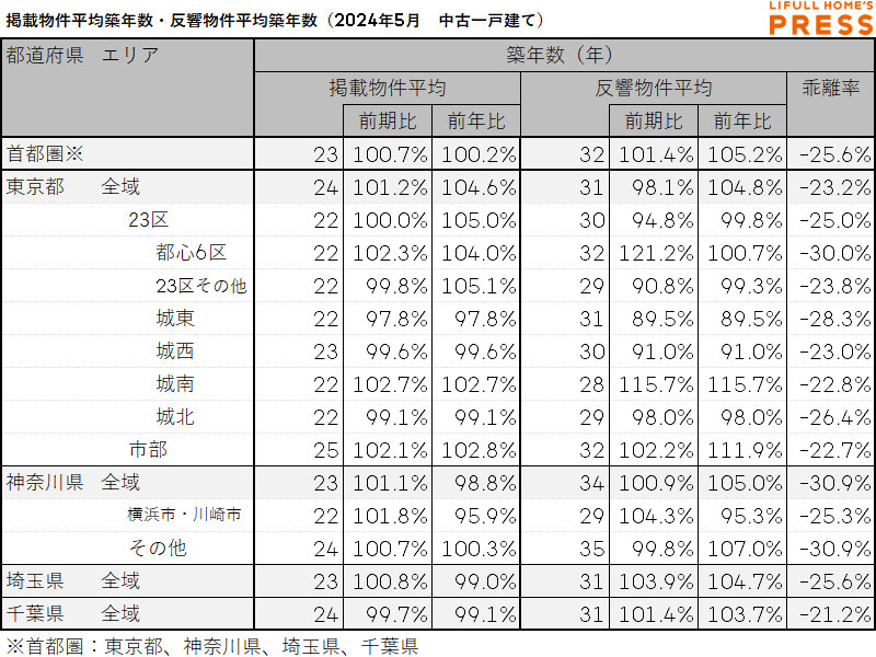 ・反響(問合せ)物件平均築年数