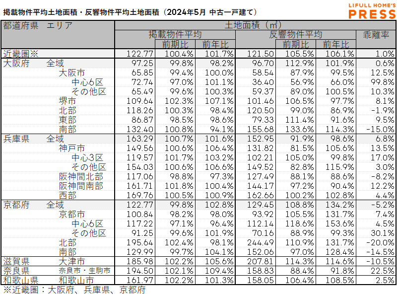 2024年5月の近畿圏中古一戸建ての掲載物件平均価格および反響物件平均価格は以下の通り。