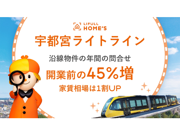 ライトラインは宇都宮駅東口から宇都宮大学陽東キャンパスやグリーンスタジアム、新興住宅地のゆいの杜などを経由し、芳賀町の芳賀・高根沢工業団地までの14.6kmを運行する。2025年1月末には累計利用者数700万人を達成、2030年頃には宇都宮駅西側への延伸も計画されており、宇都宮市内の東西の基幹交通として、市域全体の交通利便性と魅力を高めることが期待されている。そこでLIFULL HOME'Sは、開業後のライトライン沿線や今後の延伸計画エリアの賃貸物件への問合せや賃料の動向について調査した。
