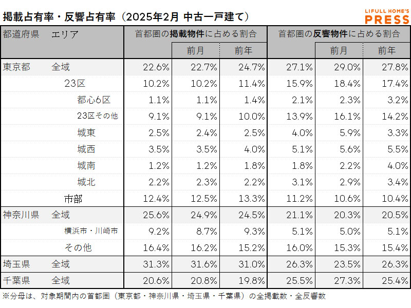 LIFULL HOME'Sマーケットレポートとは、LIFULL HOME'Sで掲載された物件データおよびユーザーがLIFULL HOME'Sを介して不動産会社に問合せた物件データをマーケットごとに公開するものである。本稿では、2025年2月に登録・公開された首都圏の中古一戸建てにおける以下のデータをまとめた。