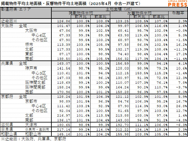 平均建物面積・平均土地面積