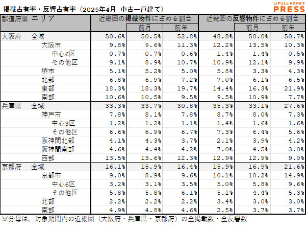 ・市場に占める各エリアの掲載占有率