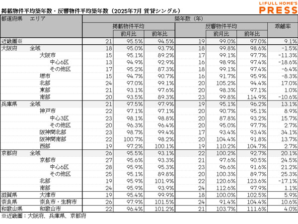 LIFULL HOME'Sマーケットレポートとは、LIFULL HOME'Sで掲載された物件データおよびユーザーがLIFULL HOME'Sを介して不動産会社に問合せた物件データをマーケットごとに公開するものである。本稿では、2025年7月に登録・公開された近畿圏の賃貸物件における以下のデータをまとめた。