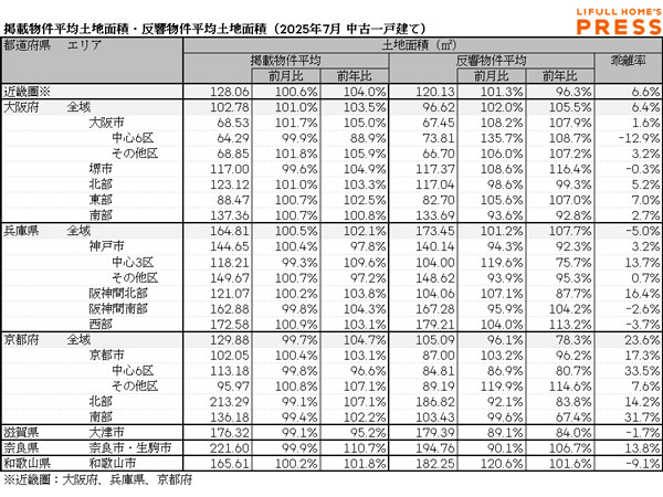 LIFULL HOME'Sマーケットレポートとは、LIFULL HOME'Sで掲載された物件データおよびユーザーがLIFULL HOME'Sを介して不動産会社に問合せた物件データをマーケットごとに公開するものである。本稿では、2025年7月に登録・公開された近畿圏の中古一戸建てにおける以下のデータをまとめた。