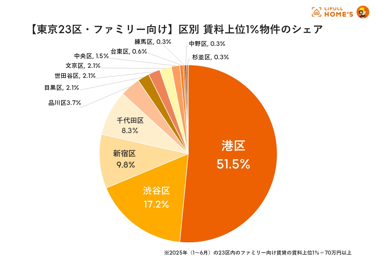ファミリー向け物件の賃料上位1%の平均賃料は23区全体の約5.8倍