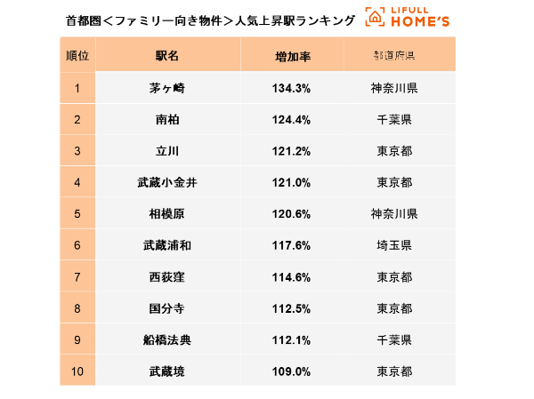 首都圏<ファミリー向き物件>人気上昇駅ランキングTOP10