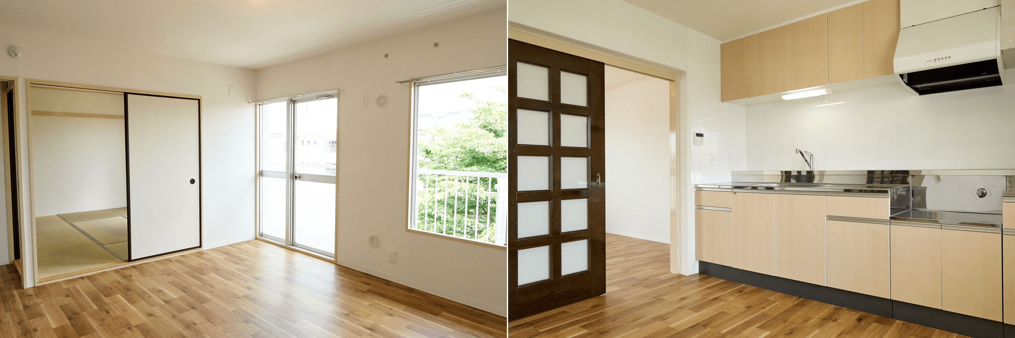 床材を新しくし、キッチンパネルへの張り替え、水回りの改修なども行われているため清潔感も十分。内装や設備は真新しく、居心地のいい住空間が広がっています。