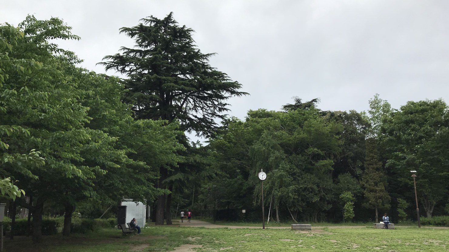 一周1kmほどの公園には、遊具はもちろん芝生広場や池などもあり、近所の住人の憩いの場となっています。ベンチに腰掛け、先ほどパーラー江古田で買ったパンをほおばります。