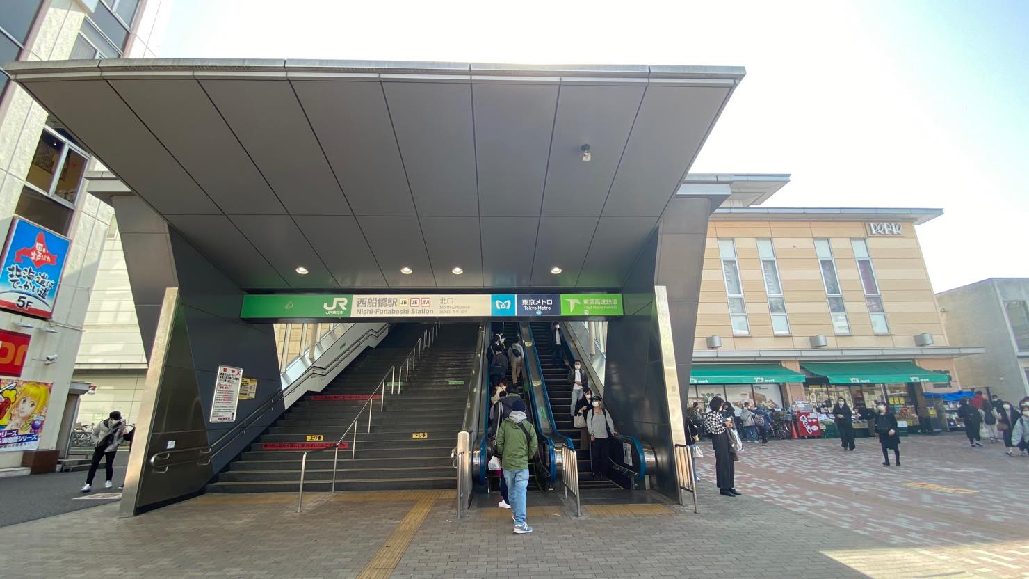 西船橋駅は、JR総武線・JR武蔵野線・地下鉄東西線・東葉高速線が乗り入れるターミナル駅で、乗者数は1日平均約10.4万人(2020年)。千葉県の中でも特に利用者の多い駅といえます。