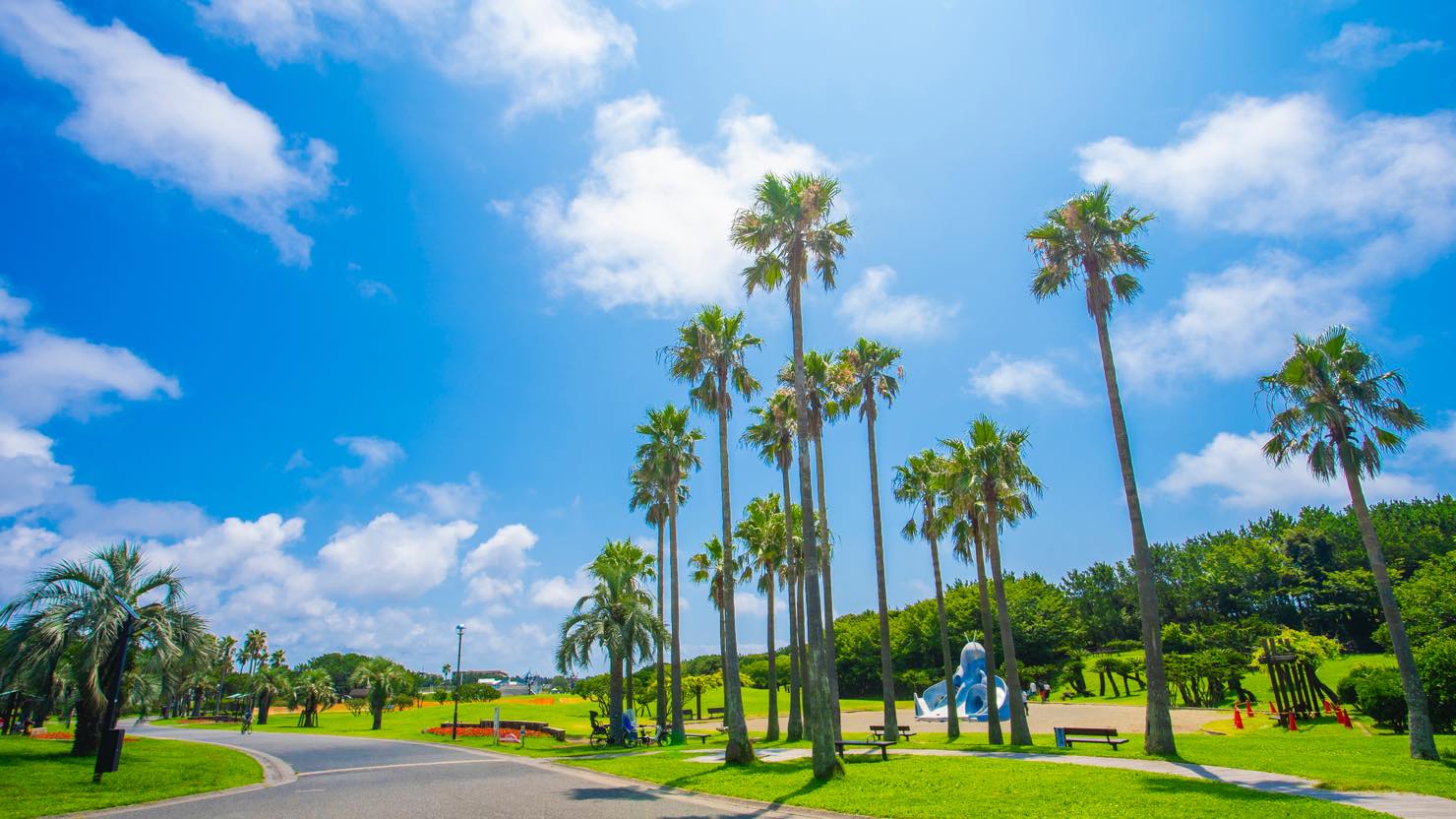 公園内には、交通公園、ジャンボプール、海を一面に見渡せるしょうなんの森、約2ヘクタールの壮大な芝生公園があります。春には、桜が満開になるのでピックニックにもおすすめ。