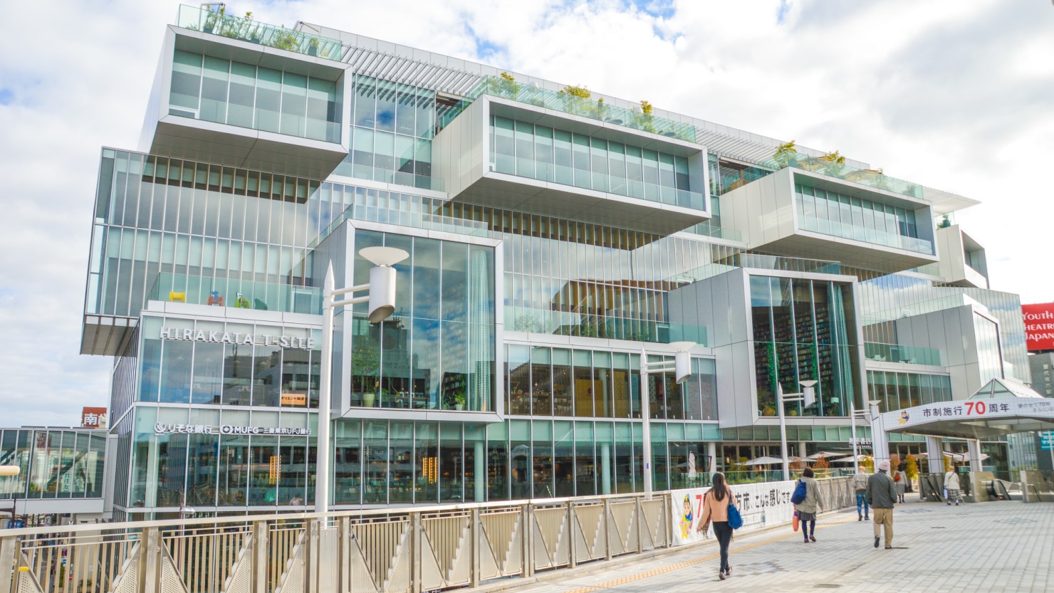 蔦屋書店を中核とした生活提案型商業施設。スーパーマーケットから飲食店、アパレルなど一通りのジャンルを網羅したショッピングセンターです。枚方 T-SITEの蔦屋書店内では本を購入しなくても試し読みが可能で、スターバックスのコーヒーを飲みながら読書を楽しめます。
