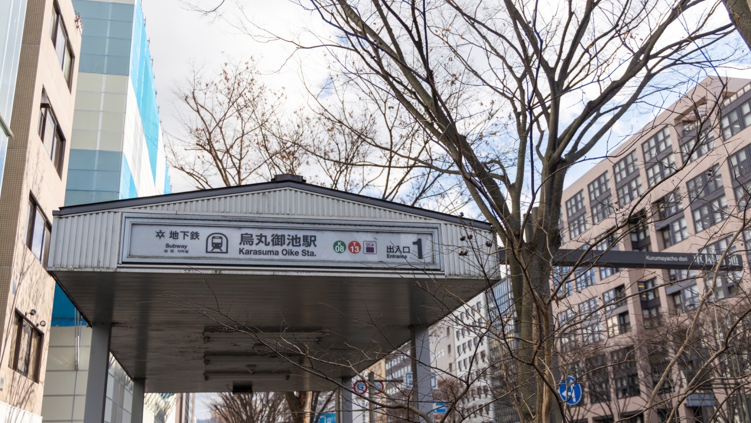 京都市の中心部にある烏丸御池駅周辺は、役所・オフィス・住宅が立ち並ぶ落ち着いた雰囲気のエリアです。烏丸御池駅には京都市営地下鉄の東西線と烏丸線が乗り入れています。